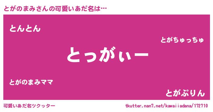 | 男性向けラノベタイトル風あだ名 | 『とがのまみに滅ぼされるだけの簡単なお仕事です』 |