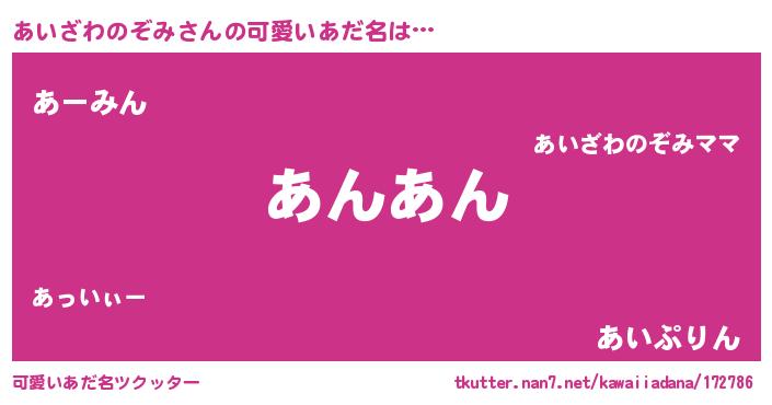 | 恥ずかしいあだ名 | 『プリティーあいざわのぞみ』『あいちん』 |