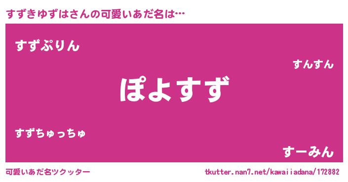 | 恥ずかしいあだ名 | 『プリティーすずきゆずは』『すずちん』 |