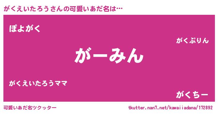 | ヘコむあだ名 | 『豆乳』『がくえいたろう(笑)』 |
