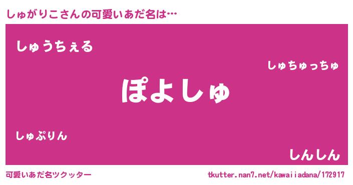 | 男性向けラノベタイトル風あだ名 | 『魔弾の王としゅがりこ』 |