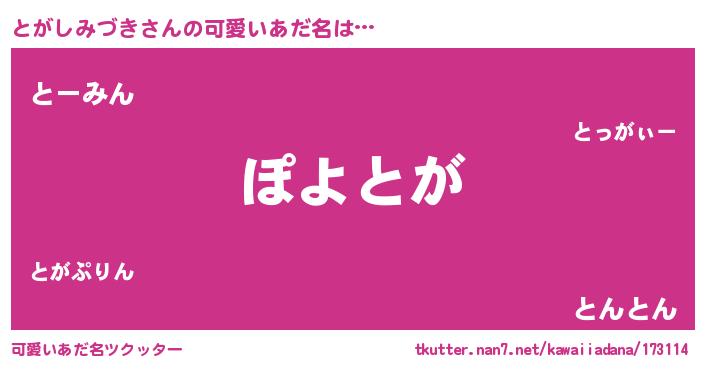 | 意味不明あだ名 | 『住所不定無職とがしみづき(7歳)』 |
