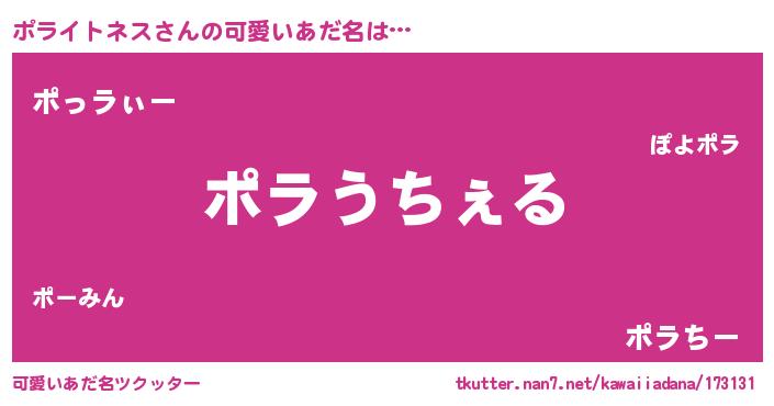 | ヒーロー風カッコイイあだ名 | 『最強戦士ポライトネス』『魔戒騎士ポラ』 |
