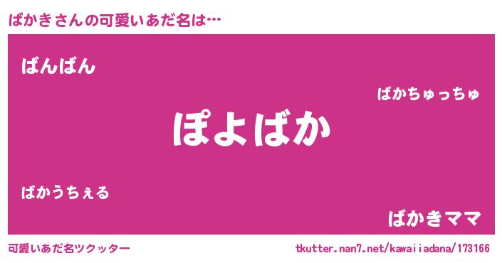 | 意味不明あだ名 | 『住所不定無職ばかき(6歳)』『自称ばかき』 |