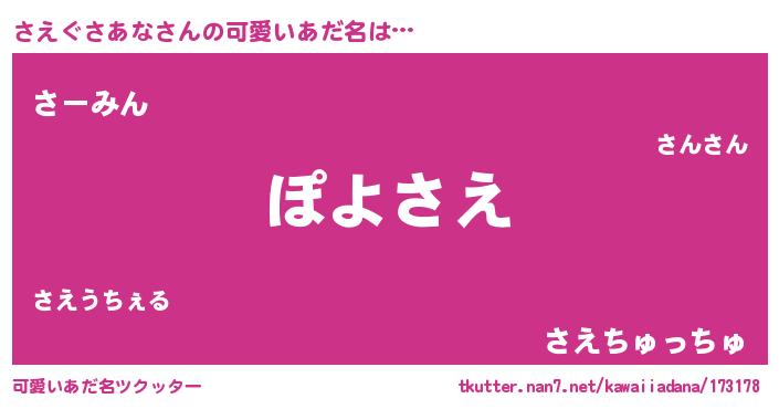 | 欧米人風あだ名 | 『アンジェラ・さえぐさあな』 |