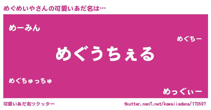 | 意味不明あだ名 | 『自称めぐめいや』 |