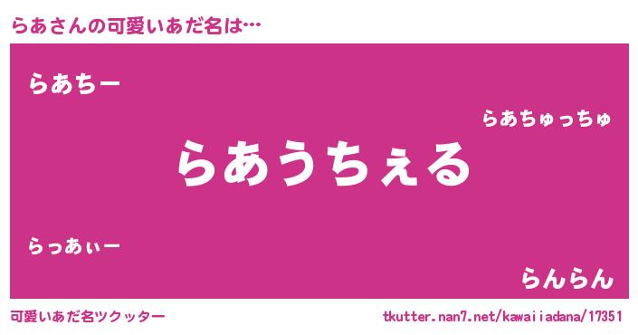 | 意味不明あだ名 | 『自称らあ』『らあフォーエバー』 |