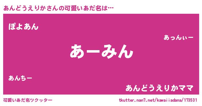 | ヘコむあだ名 | 『あんどうえりか(遠い目)』『あん太郎』 |