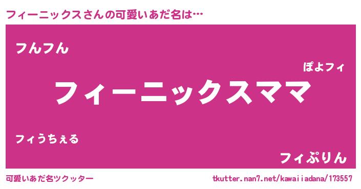 | 恥ずかしいあだ名 | 『フィちん』『プリティーフィーニックス』 |