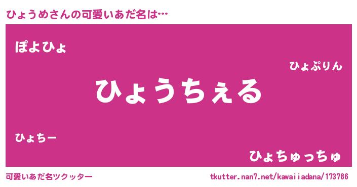 | 意味不明あだ名 | 『自称ひょうめ』『ニラ科ひょうめ属』 |