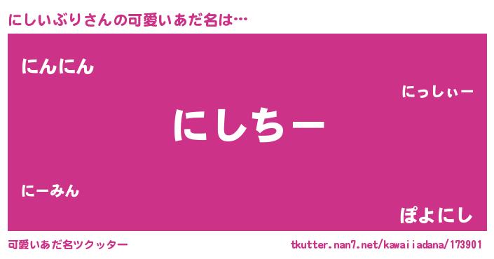 | 恥ずかしいあだ名 | 『にしっちょ』『プリティーにしいぶり』 |