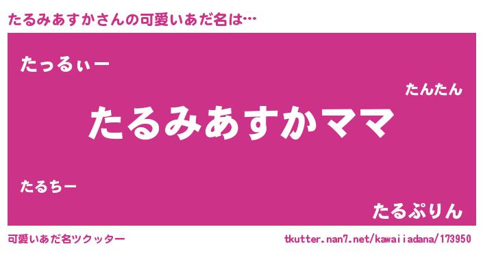 | 胡散臭い通販商品みたいなあだ名 | 『来世でも幸せになれる健康食品…その名も「たるみあすか」』 |