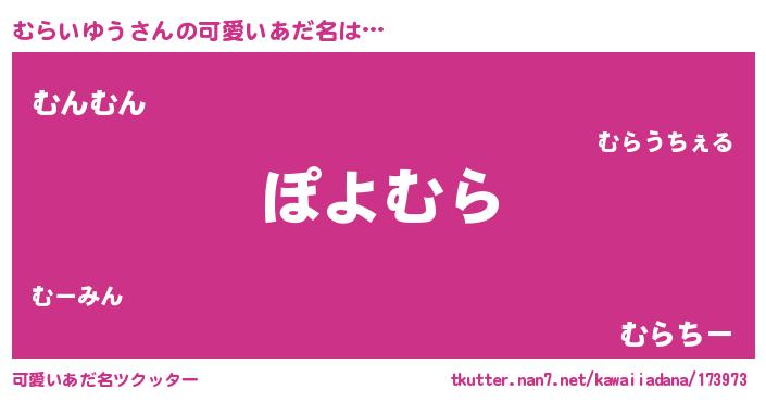 | 恥ずかしいあだ名 | 『プリティーむらいゆう』『むらっちょ』 |