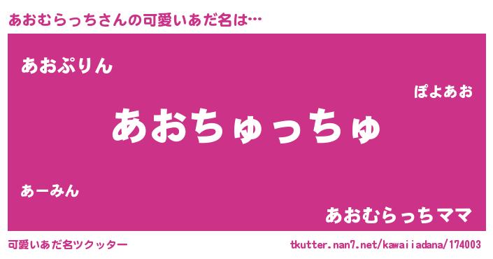 | 女子向けラノベタイトル風あだ名 | 『あおむらっち恋絵巻』 |