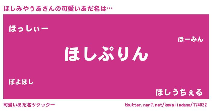 | 男性向けラノベタイトル風あだ名 | 『転生したらほしみやうあだった件』 |