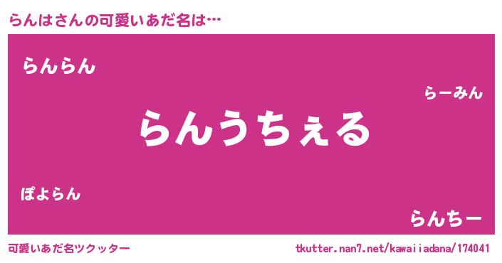 | ヘコむあだ名 | 『らんにゅー』『豆乳』『らんは(爆)』 |
