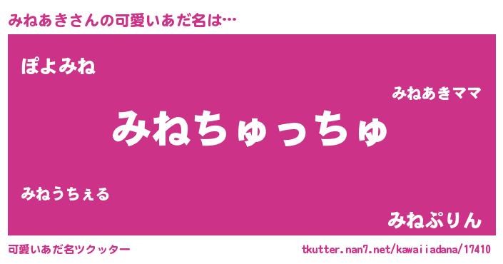 | ポケモン風あだ名 | 『ミックウザ』『ミーネイ』 |