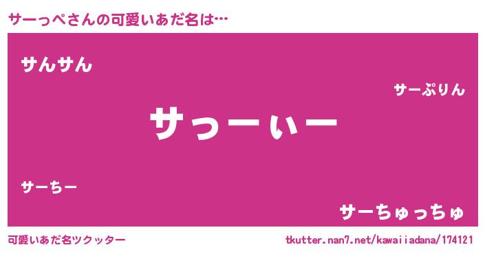 | 男性向けラノベタイトル風あだ名 | 『サーっぺの嫁は女の子じゃないと思った?』 |