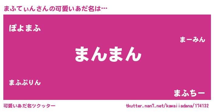 | 意味不明あだ名 | 『ペロリンまふてぃん』『自称まふてぃん』 |
