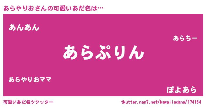 | 恥ずかしいあだ名 | 『プリティーあらやりお』『あらっちょ』 |