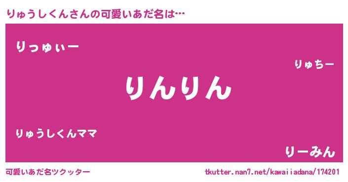 | 女子向けラノベタイトル風あだ名 | 『(仮)りゅうしくんのやんごとなき事情』 |