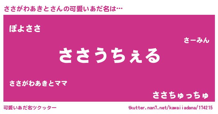 | ヘコむあだ名 | 『ささがわあきと(笑)』『ささっ子』 |
