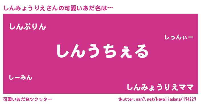 | 男性向けラノベタイトル風あだ名 | 『Re:しんみょうりえから始める異世界生活』 |
