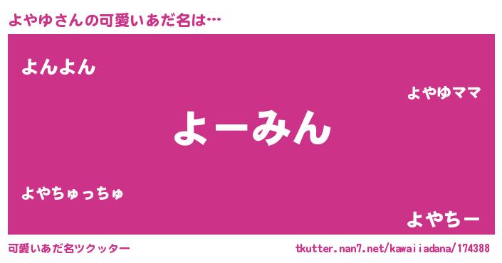 | 意味不明あだ名 | 『ペロリンよやゆ』『よやゆフォーエバー』 |