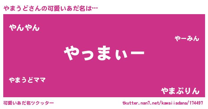 | 男性向けラノベタイトル風あだ名 | 『やまうどの嫁は女の子じゃないと思った?』 |
