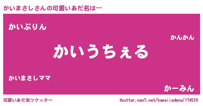 | 恥ずかしいあだ名 | 『カイマサシデラックス』『かいちん』 |