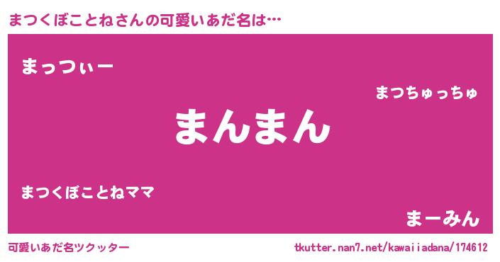 | 欧米人風あだ名 | 『マイケルまつくぼことね』 |