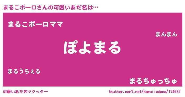 | ヘコむあだ名 | 『まるこボーロ(笑)』『まるもー』 |