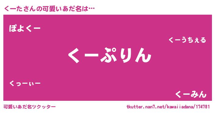 | 意味不明あだ名 | 『ヨモギ科くーた属』『自称くーた』 |