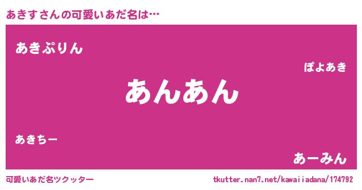 | 意味不明あだ名 | 『ペロリンあきす』『たけのこ科あきす属』 |