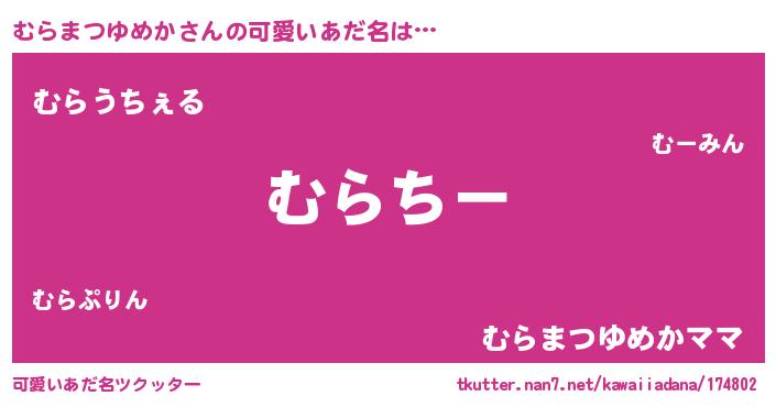 | ヘコむあだ名 | 『豆乳』『むらまつゆめか(苦笑)』 |
