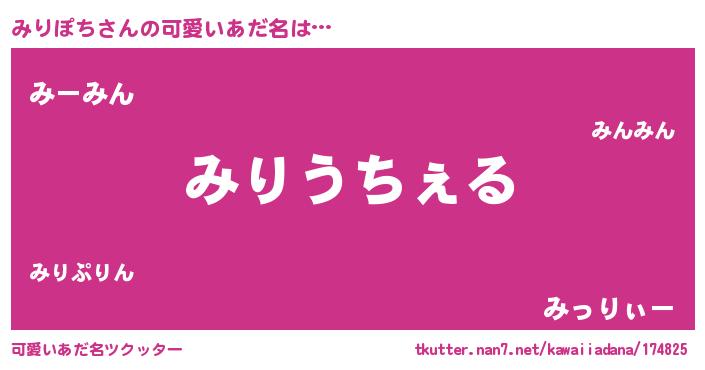 | 男性向けラノベタイトル風あだ名 | 『Re:みりぽちから始める異世界生活』 |