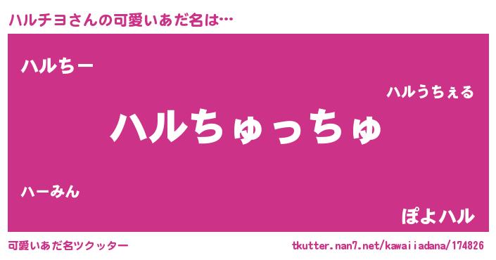| ヘコむあだ名 | 『なまこ酢』『ハルにー』『ハル太郎』 |