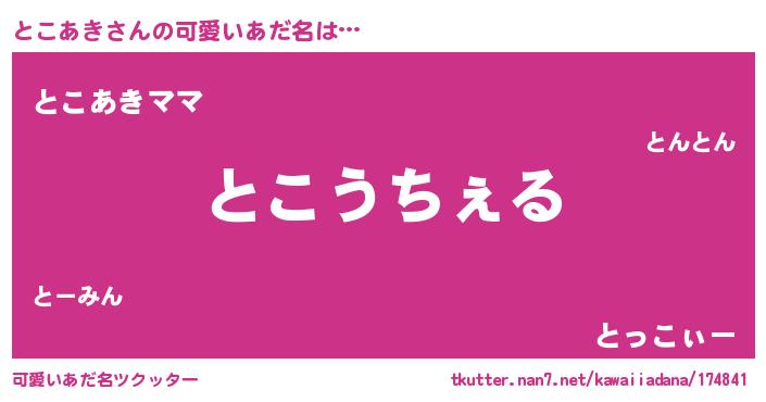 | 意味不明あだ名 | 『自称とこあき』『永久保存とこあき』 |