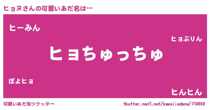 | 女子向けラノベタイトル風あだ名 | 『ヒョヌ恋絵巻』『ヒョヌの玉の輿計画!』 |