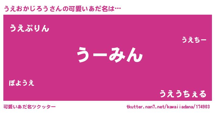 | 恥ずかしいあだ名 | 『ウエオカジロウデラックス』『うえちん』 |