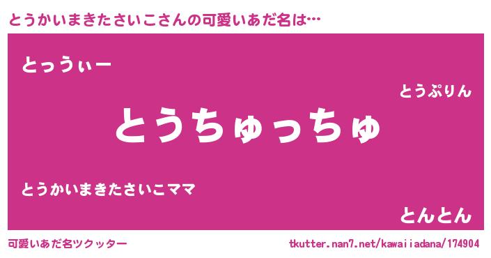 | 欧米人風あだ名 | 『アンジェラ・とうかいまきたさいこ』 |