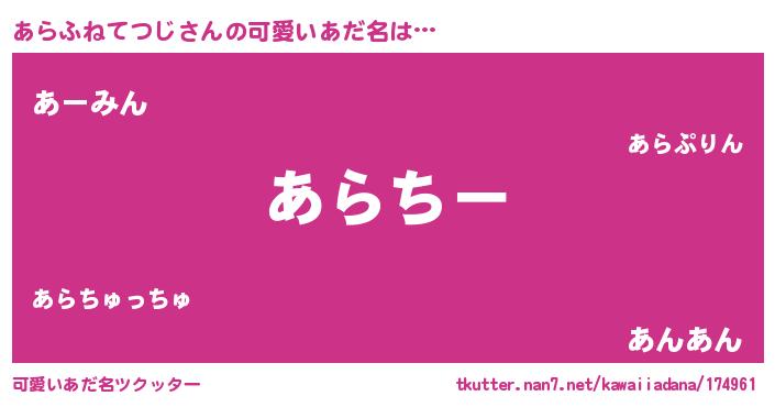 | 女子向けラノベタイトル風あだ名 | 『あらふねてつじの婚約者』 |