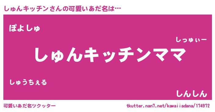 | 男性向けラノベタイトル風あだ名 | 『しゅんキッチンという概念が存在しない退屈な世界 』 |