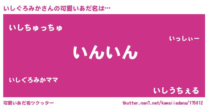 | 恥ずかしいあだ名 | 『プリティーいしぐろみか』『いしちん』 |