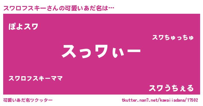 | ヘコむあだ名 | 『スワっぺ』『スワロフスキー(震え声)』 |