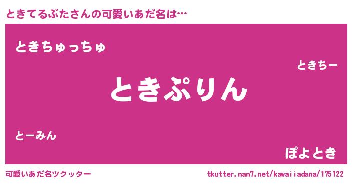 | 女子向けラノベタイトル風あだ名 | 『ときてるぶたの玉の輿計画!』 |