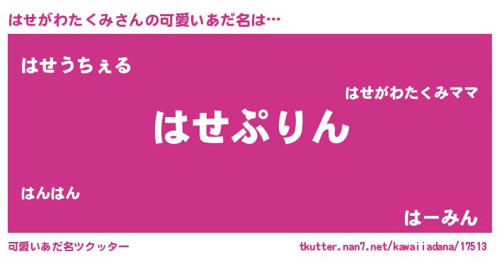 | ヘコむあだ名 | 『はせがわたくみ(笑)』『はせにゅー』 |