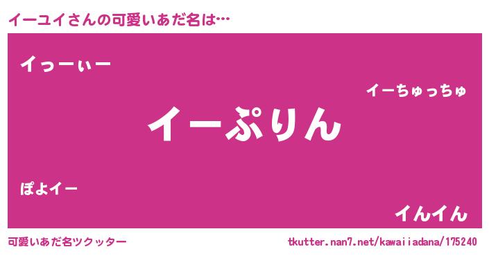 | 女子向けラノベタイトル風あだ名 | 『イーユイの玉の輿計画!』 |