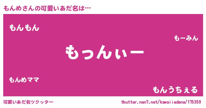 | 男性向けラノベタイトル風あだ名 | 『もんめの嫁は女の子じゃないと思った?』 |