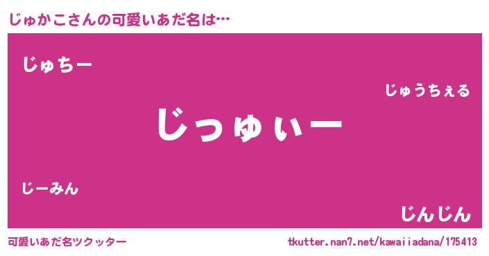 | ヒーロー風カッコイイあだ名 | 『銀牙騎士ジュ』『ウルトラじゅかこマン』 |
